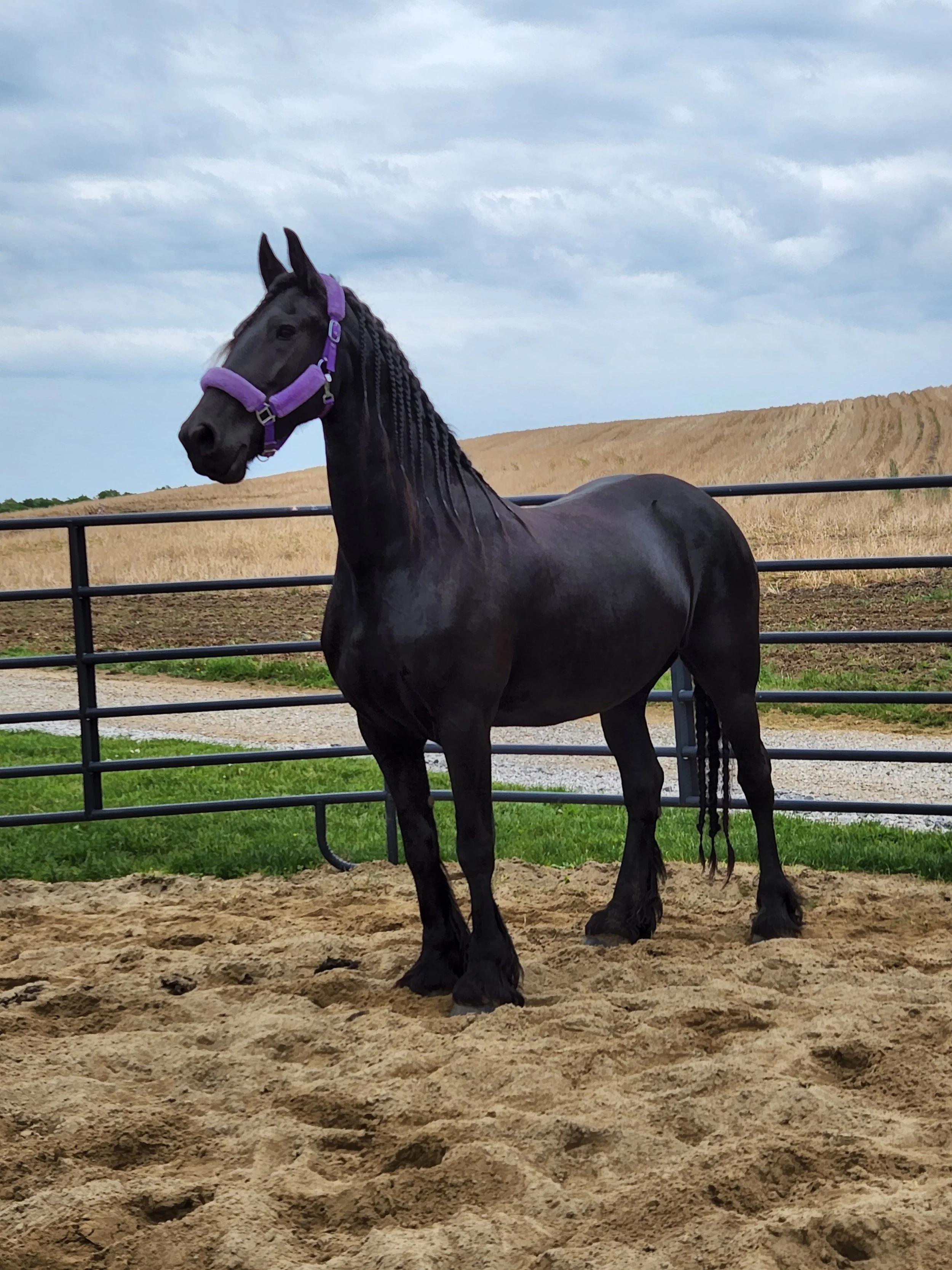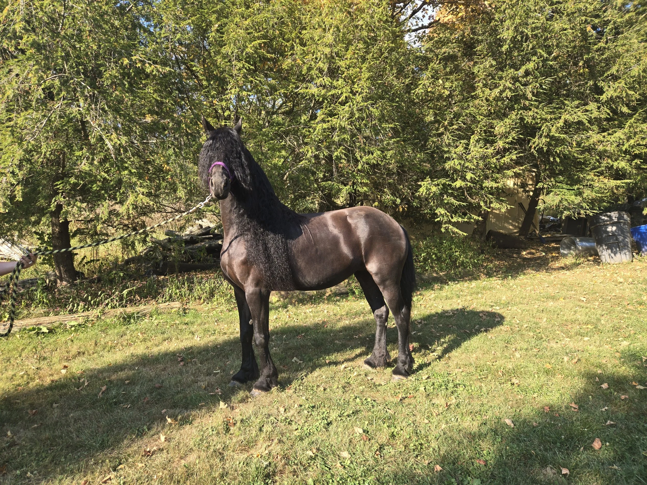 Sire is a very nice stallion with movement and a decent a mount of hair. He scored 6 & 7s across the board at the 2025 OH keuring. He is a stallion with a gelding personality.