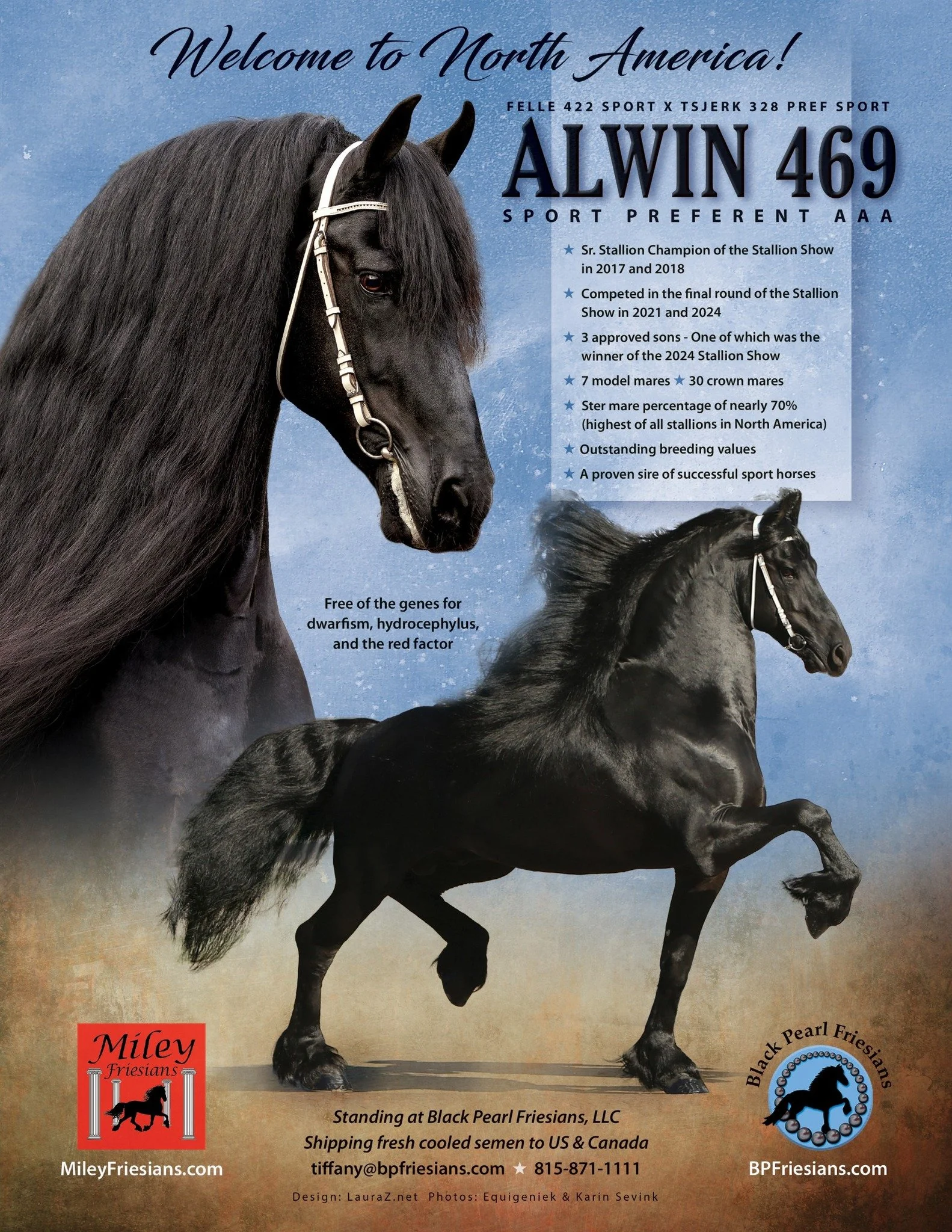 SIre is Gypsy (homozygous tobiano and Homozygous Black) owned by Blackshire Equestrian Centre. You can visit their website and you can see all of the stallions accomplishments.