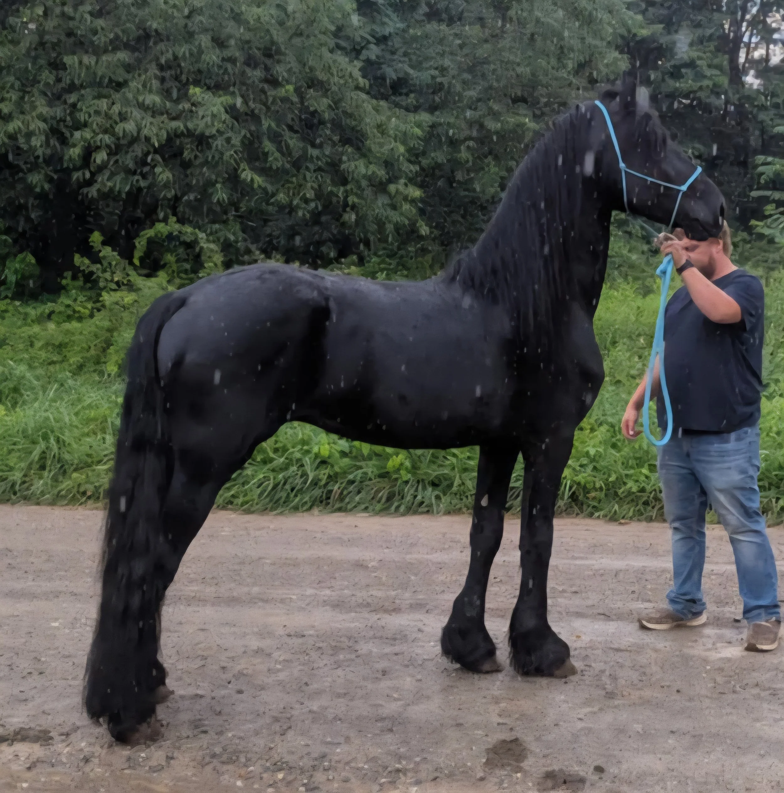 Dam is full friesian baroque style with a decent amount of hair and feathers